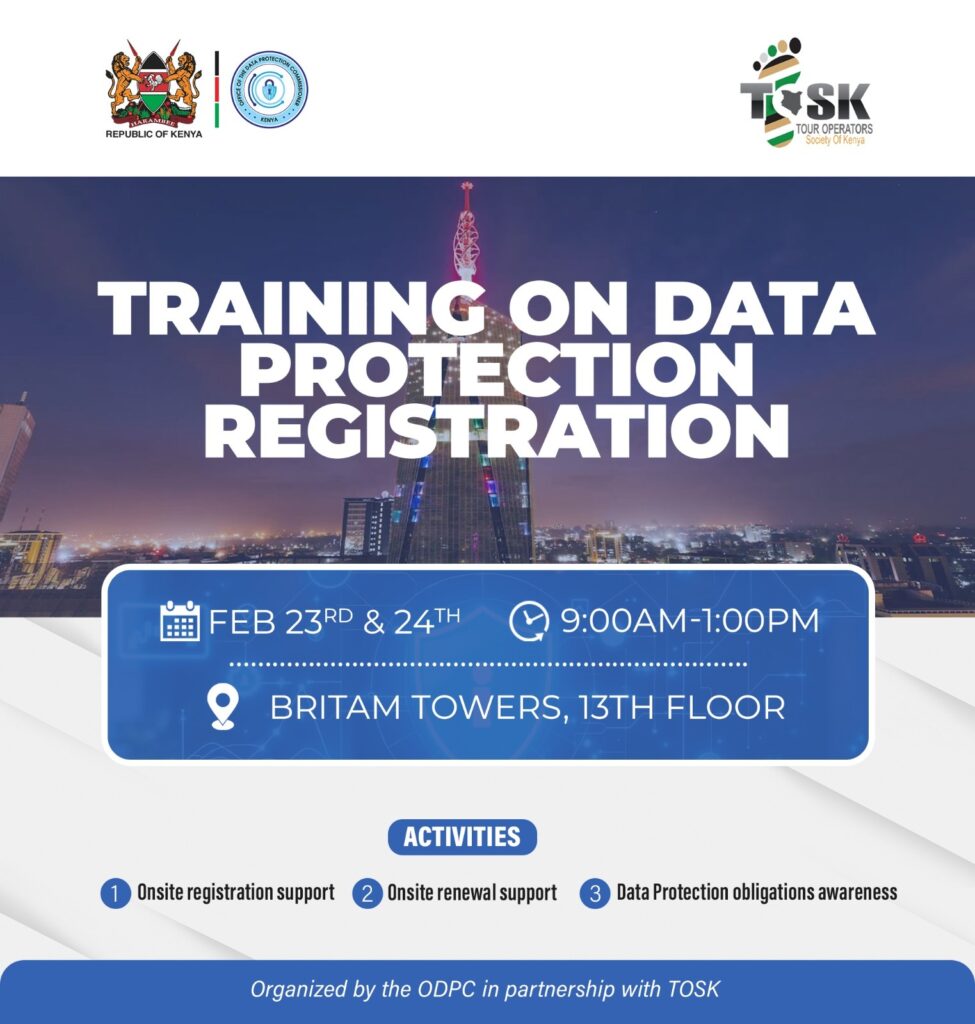 TOSK in partnership with the Office of the Data Protection Commissioner (ODPC), is pleased to invite you to a Training on Data Protection Registration.